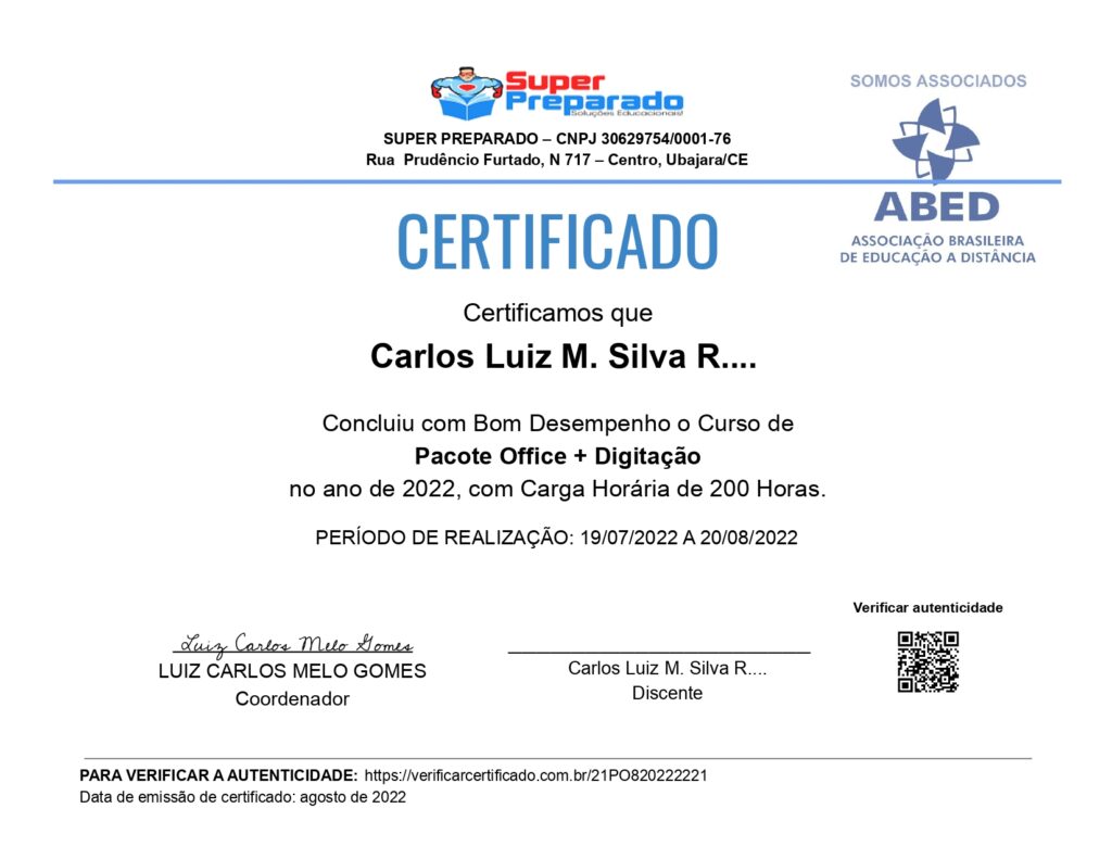 Não deixe o seu currículo sem os cursos que toda empresa exige! E não somente isso! Ao realizar esses cursos poderá fazer concursos com mais preparação porque esses os assuntos desses cursos são exigidos em maioria dos concursos e seleções. NÃO FIQUE PARA TRÁS! Invista em sua CARREIRA para estar preparado(a).