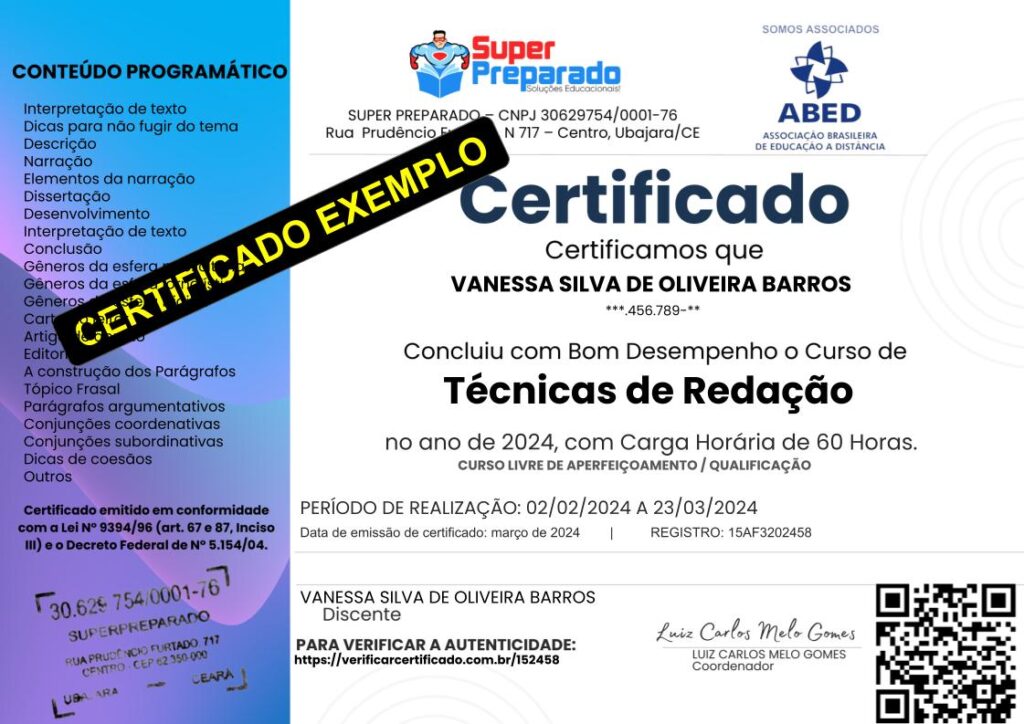 O SUPER PREPARADO é associado da Associação Brasileira de Educação a Distância. E isso agrega valor no curso e no certificado.